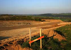 Down in the valley the excavated earth from Havett Hill and Lantoom is used to build up the new route.
