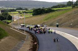A38 Dobwalls Bypass - August 2008- Charity walkIt has become a tradition to hold a charity walk along a new dual carriageway before it opens. Interserve in conjunction with Liskeard Lions and Rotary clubs have arranged for a charity walk along the 5km route on Sunday 10th August 2008. 3 walks were arranged and the rain held off all day for the walkers. The first walk of the day started at 9am. There was a tragic incident in the village the previous Thursday so before the walk strated we held a minutes silence in remembrance of Peter Seaman. Children from Dobwalls School started the walk by cutting the ribbon. We walk along the western carrigeway towards Moorswater. The second walk started at 11am. These pictures were taken from Coldwinds lane. For the third walk at 1pm, I stood on the new bridge at Havett Hill. Councillor George Hocking led the way on his electric wheelchair. We walked at 9am. The 1km point is beyond Havett Hill bridge. 2km is by the new bridge at Looe Mills junction. Michael Taylor from BBC Radio Cornwall was talking to walkers when the Cornwall Air Ambulance flew overhead. The Air Ambulance is one of the charities to benefit from the entrance fee for the walk. Water was available at the half way point by Moorswater. 3km is back by Looe Mills junction and 4km is at Petersfield. 5km is not to far from the finish and here is the proof we completed the route. More information and entry forms can be found on the Highways agency web site. |