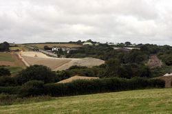 A38 Dobwalls Bypass - September 2007 - A390 railway bridgeI have not taken so many pictures at this location and over the last month a lot of earth has been moved. These are taken from beneathway looking west over the railway line. Looking over from the A38 we can see the start of a temporary road that will take the A390 traffic onto the new roundabout. The north east side of the railway track is being cleared. This is the temporary road looking NE towards the A38 & roundabout. On the SW of the railway track earth from the roundabout excavations is used for the embankment. And looking west along this new embankment to rejoin the A390. As I walked under the bridge a train came along. Looking back from Treburgie you can see the height of the embankment. |