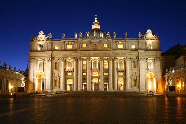 13th February 2007 - Piazza San Pietro by night - Vatican City, RomeAfter visiting St Peter's Square on Sunday we returned to the Piazza San Pietro on Tuesday evening where Bernini's piazza was floodlight, and Michelangelo's dome and cupola rises 450ft above the 16th century Basilica San Pietro.