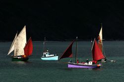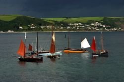 16th June 2007- Looe Lugger regatta - pmThe Luggers raced in Looe Bay all day, rain showers in the afternoon gave way to some sunny spells.The light is wonderful after a rain shower as it picks out some of the luggers. In years gone by luggers fished off the Cornish coast using long lines for conger, turbot and ray. and drift nets were shot for pilchards Today these former fishing boats are lovingly restored by their owners and they are now raced. These images are taken from Hannafore looking East over Looe Bay towards Seaton, Downderry and Rame Head. Late in the afternoon they moor up in the bay waiting for the tide. |