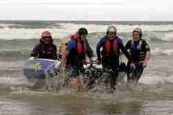 If a boat overturns or looses a crew member a red flag stops the race and the obligatory chequered flag is used to greet the heat winner.