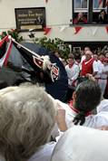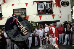 At ten minutes to eleven the musicians led by Matthew Chown, the master of ceremonies, come out from the Golden Lion and move into the street.