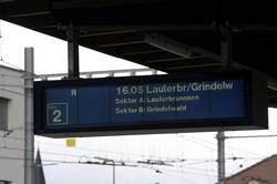 The train from Lauterbrunnen and Grindelwald arrives on platform 2.