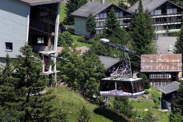 Leaving the Schilthorn cable car station we can see Murren and the cable car to Grindelwald.