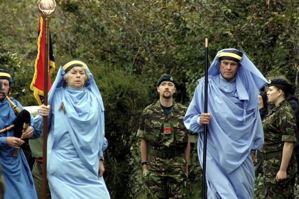 Led by the Heralds the procession leaves the school and makes it's way to the bardic circle on barbican Playing Fields.