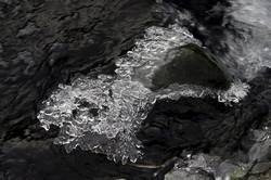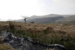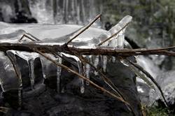 28th December 2008 - Dartmoor - Raddick Hill - Devonport LeatSX 57365-71353 - A cold and crisp day, ideal for a walk along the Devonport Leat south of Princetown.Below Black Tor, the Devonport leat cascades down Raddick Hill. At the bottom there is an aquaduct over the River Meavy. Along the leat ice covers the vegitation. Even with a strong flow of water there were Ice Formations everywhere. Twigs, rocks and grass all provide anchor points for icicles. It was so cold overnight that Ice still surrounded the small rocks in the leat . The ice is so thick the water does not dislodge it. At tghe top of the hill we can look south over Sharpitor and Leather Tor. |