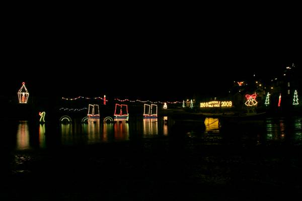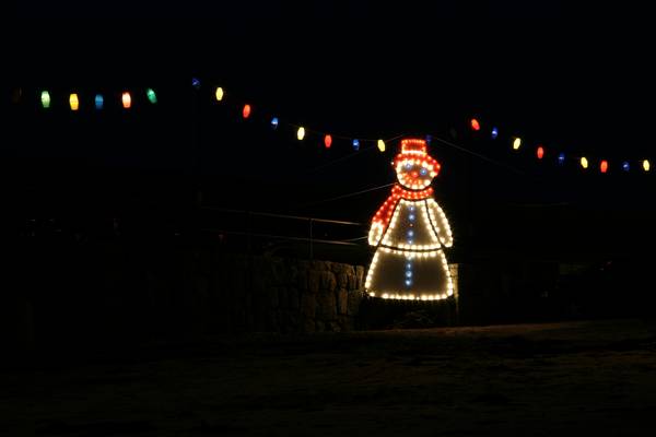 3rd January 2009 - Mousehole Christmas lightsThe Mousehole Christmas Light committee celebrates 45 years of illuminations around the inner harbour at Mousehole.The final night of this years display was the 3rd of January, so as we were close to Mousehole we drove over as dusk fell. This year is the centenary of the Mousehole male voice choir. There was a wind blowing and even with the harbour gate in place there was a swell in the inner harbour. With long exposures this gave a few challenges. The Ship Inn is famous for Starry Gazey Pie on Tom Bawcocks Eve. Even the Mousehole cat put in an appearance. and the whale continues to wink. The lights are supported by voluntary donations. You can read more about the lights at the official web site. |