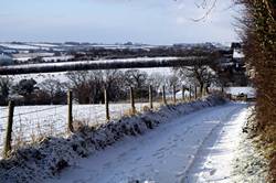 3rd February 2009 - Dobwalls in the snowEven Cornwall did not escape the highest snowfall recorded in the last 22 years.These images are taken in my village, Dobwalls. This is the green on Treheath Estate. With the Dobwalls bypass open there is little traffic in the village to clear the main road. Cars are covered in the pub car park. The Cornish flag still flies. This is the Duloe Road. Looking North along the Duloe Road is the old A38 junction and the road to Havett Hill. Looking west all of the fields are covered in snow. and children have found a hill in the valley suitable for sledging. I walked along the public footpath beside the west looe river. from the top of the field the sheep were watching me. |