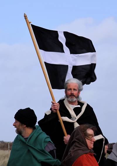 8th March 2009 - St Piran at PerranporthThe people of Perranzabuloe celebrate St Piran each year on the Sunday closest to St Pirans day.This year Colin Retallick took on the role as St Piran. carrying the Cornish flag proud. St Piran's message was spoken at the cross. Dynnargh onen hag oll. Welcome one and all This cross symbolises our love of Kernow. The blocked hole remembers those who have gone before us. Here today , we are united. Linked as a people, as a nation, with a common cause to protect and celebrate Kernow. Kernow Bys Vykken! |