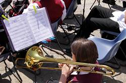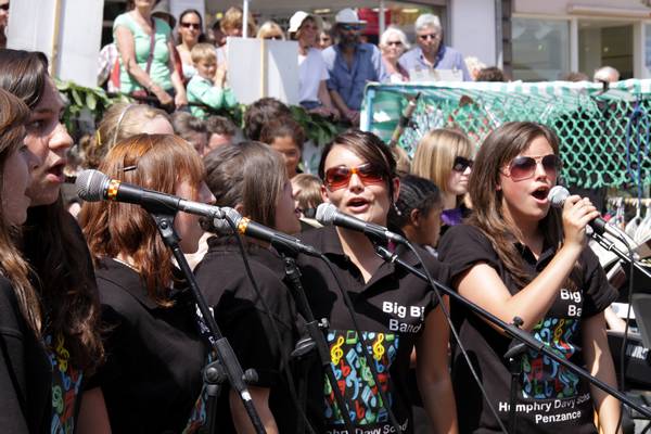 Ensembles. Punch and Judy. another band . Underneath Humphry Davy's statue the Big Big band from Humphry davy school entertained the crowd. the base of the statue makes a good stage. Here come the girls!. Wow, one of the best performances of the day. |