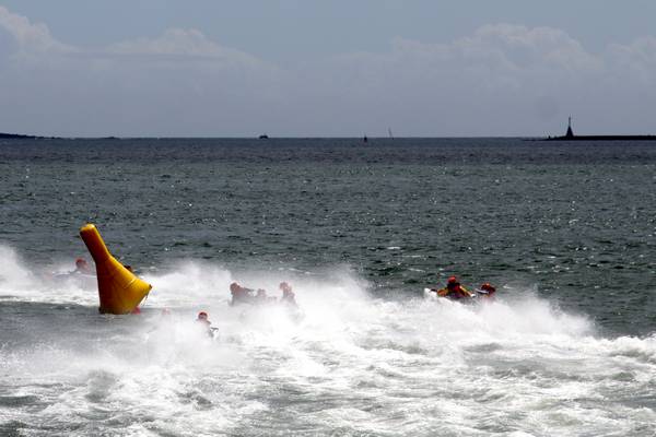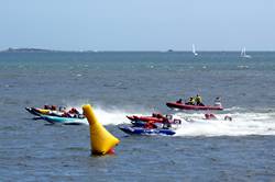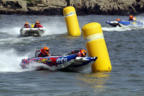 12th July 2009 - Zapcat racing - Plymouth HoeSunday 12th July saw round 8 of the 2009 Zapcat championships.For the Plymouth grand prix, the course was laid just below Smeaton's This location provided a spectactular view of the racing. Each heat takes the format of a 5 lap race. For the first lap all the zapcats have to miss out the chicane. as they race pass the jetties. Passing the wet pits the Zapcats head out into Plymouth sound. It is a rolling start for each heat. Yellow and green flags on the start boat control the start. With the chicance the course looks like the figure "M". The choice of taking the pit lane early or late on the heat can determine if the team can get into a position of "clean" water. rather than getting in the wake from a competitor. zapcat-racing.co.uk reports cloudy blue skys with wind gusting to 28mph. The chicance has to be negociated for the second to fifth laps. Each team can use the pit lane once during each heat. These images are from the heats. Division two final. Division one final. |