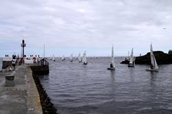 17th August 2009 -Gul RS200 national sailing championships - LooeLooe sailing club is the venue for this years Gul RS200 national championships.This is day two of the five day sailing championships. Looe bay provides a good area for sailing with the prevailing SW winds. The course was well out in Looe bay. The RS association website says that over 109 boats have entered the championships. This makes for an impressive sight at the end of the days racing. As the fleet returns to port, some use the river, others come onto the beach. |