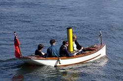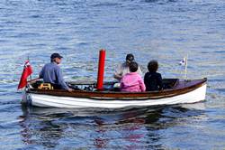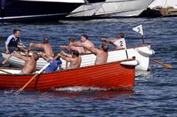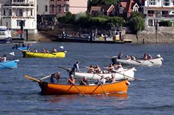 28th August 2009 - Dartmouth Royal RegattaThe Port of Dartmouth Royal Regatta is held over three days at the end of August.With the close links of Britania Navel College in the town, A Royal Navy vessel acts as guard ship for the regatta. The colours of the hulls reflect in the sunshine. Several small steam ships are moored in the port. On of the favourite events of the regatta is Friday's rowing. Whalers and "Blue" boats are used by eights, fours and twos. A whaler from a different centuary. |