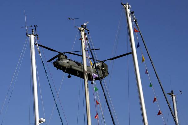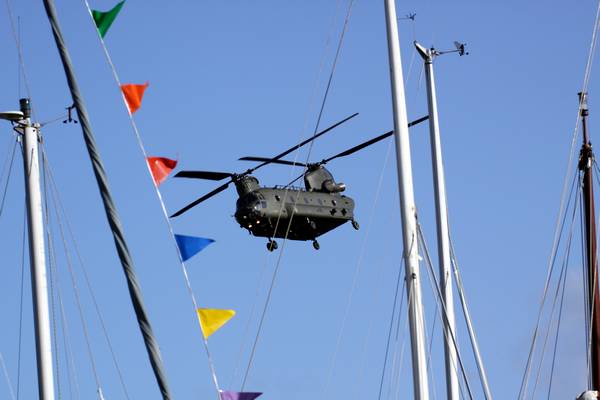 28th August 2009 - Dartmouth Royal Regatta - Air ShowOver the three days of the regatta various aircraft fly over and give displays. Today is the turn of a Merlin and a ChinookThe Merlin HM Mk 1 has been in Service with the Royal Navy since 1998. There are 5 Squadrons, 814 Sqn, 820 Sqn, 829 Sqn, 824 Sqn and 700 Sqn and all are based at the Royal Naval Air Station Culdrose in Cornwall. The Royal Navy website says "Merlin is designed to operate from both large and small ships' flight decks, in severe weather and high sea states, by day and night". This makes for an impressive sight at the end of the days racing. The Merlin is equipped with a winch. One of the crew is winched down into the river. The crew wave to the crowds at the end of their display. Not to be outdone by the Navy, the Royal Air Force Chinook HC2 gives a display. It is quite amazing how maneuverable this aircraft is. More information about the Chinook can be found on the Roal Air Force website. |