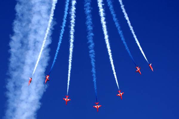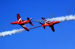 28th August 2009 - Dartmouth Royal Regatta - Red ArrowsOne of the highlights of the regatta is the display by the Red Arrows.This year Red 9 had to return to Exter Airport to change Hawks due to a problem with the air brake. So 10 minutes later than planned all nine Hawks arrive to thrill the crowds. Diamond Nine The clear blue sky shows up their trade mark Heart. |