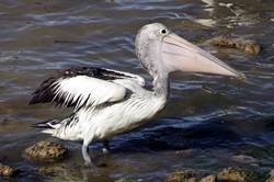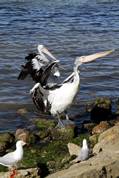 6th November 2009 - Pelican feeding - Kingscote - Kangaroo IslandKingscote is the largest town on Kangaroo Island in South Australia.One of the locals has been out fishing and every evening at 5pm he feeds the pelicans. Seagulls also want to get into the act, Pelicans gather on the jetty rocks. more Pelicans arrive as 5pm approaches. Handfulls of fish are met with wide open beaks. He takes the rest of the fish out into the lagoon. Where they all squabble over whats left. Contentment after a feed!. |