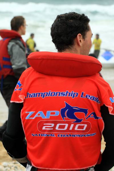 25th April 2010 - Round 2 - Blue Chip Newquay Zapcat Grand PrixSW 800 620 - Newquay's Fistral Bay is the host for Round 2 of the Blue Chip Newquay Grand Prix.This is the first time Fistral Bay has hosted the sport. 23 Zapcats line the beach ready for a days racing. The starter uses different coloured flags to control the heats. This year there are bibs for the championship and team leaders. The Zapcat safety team are ready as several zapcats are expected to "flip" in the surf. |