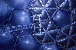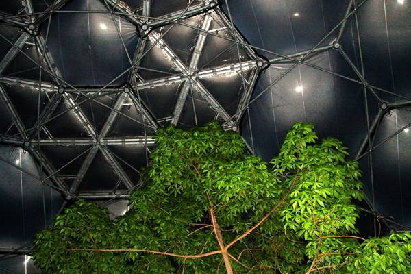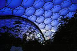 15th May 2010 - Eden - Rainforest Biome at NightThe Rainforest and Mediterranean Biomes of Eden were constructed in 160 year old China Clay workings.Tonight there is something different at the Biomes, as Eden joins the national Museums at Night campaign, inviting visitors to explore the Rainforest Biome afterdark. Before sundown we can explore the Mediterranean Biome as spring flowers bloom. As the sun sets we enter the Rainforest Biome. By torchlight we can experience the sounds of the rainforest at night. I used a torch to focus and a flashgun to illuminate the trees, changing white balance settings between tungstan and flash. Tungstan cretas a blue cast that contrasts well against the green foliage. Where as the flash setting gives a greyer colour. The hexagonal construction of the Rainforest Biome creates graphic abstract images. Changing the White Balance from Tungstan to Flash produces different colour casts. |