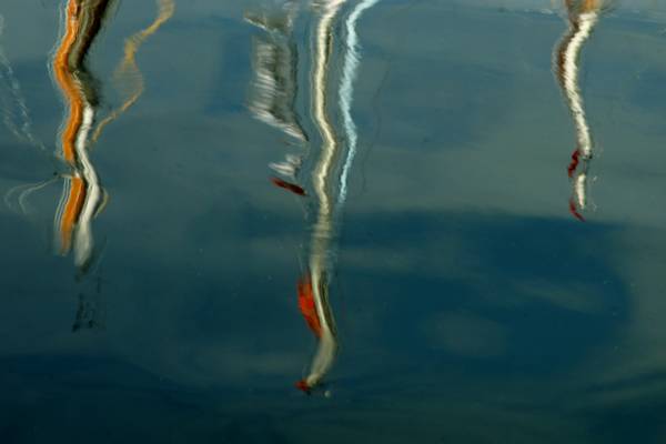 When the 2008 Transat boats were in the harbour, I took some successful shots of reflections from the IMOCA 60 boats.