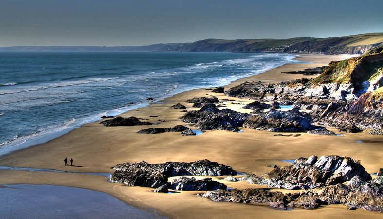 To the West, Tregantle Beach and Long Sands, with Looe in the far distance.