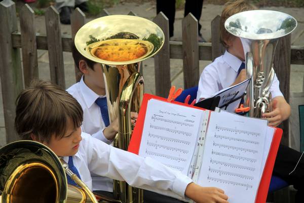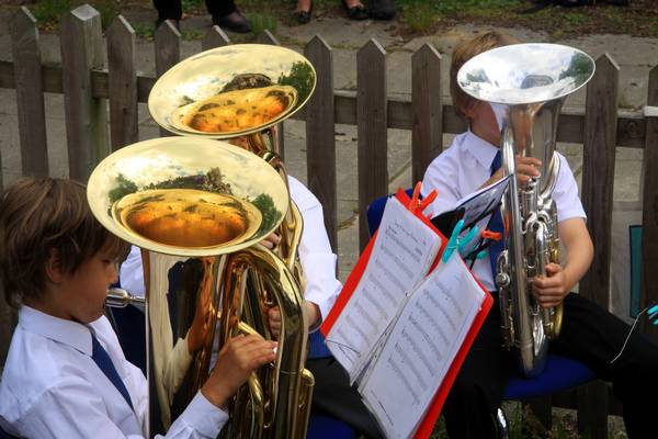Sunday service finishes with the blessing under the trees in the churchyard.