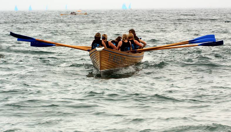 After crossing the finish line they return to the beach, where the next crew is waiting.