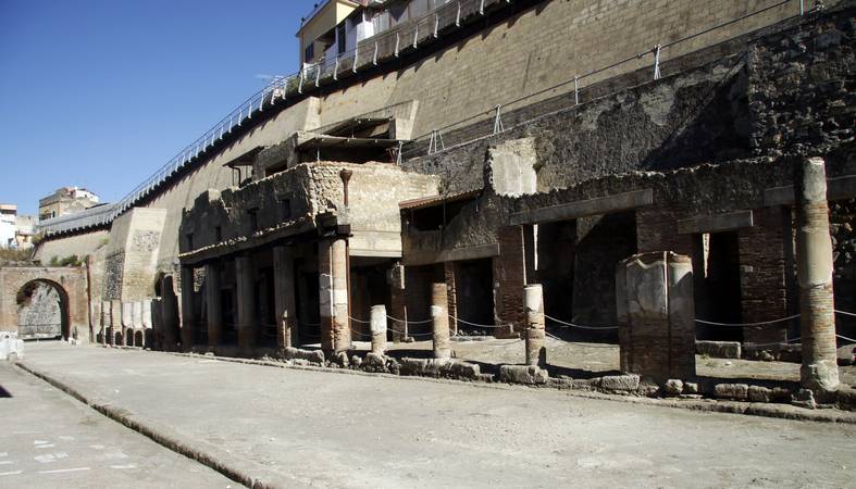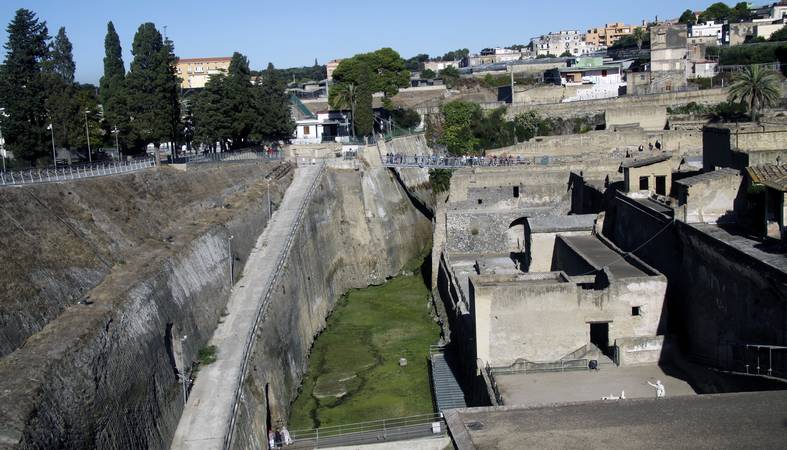 Unlike Pompeii which was a merchant town, Herculaneum on the coast was a high class resort with elegant residences on the slopes of Vesuvius.