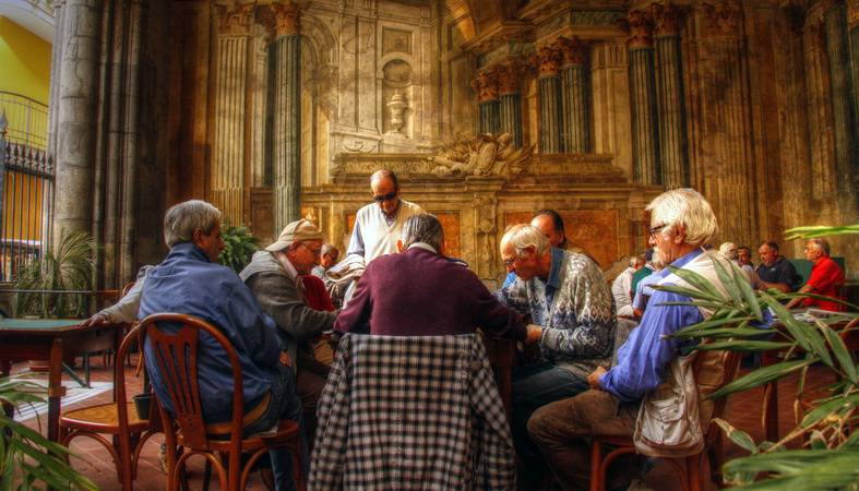 Once a meeting place or loggia for the medieval aristrocacy, this domed enclave open on two sides now houses a working mens club.