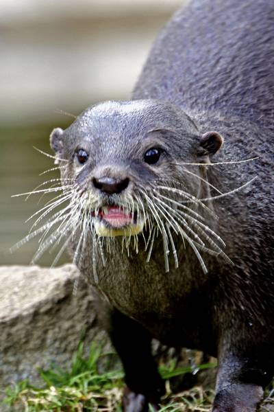 It is feeding time for a pair of Asian short clawed Otters.