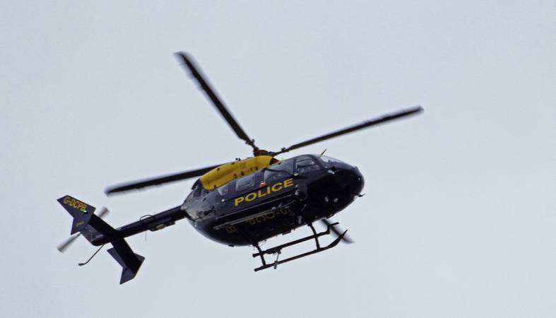 Patriotic Police fly the Union Jack from the patrol car windows.