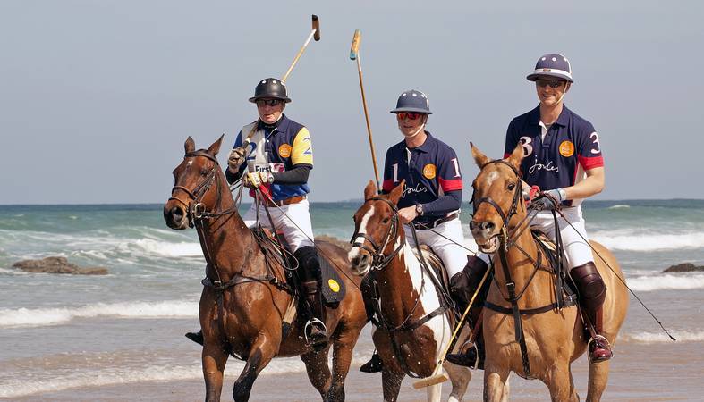 Three polo players, Andy Burgess, Rob Brockett and Major Ben Marshall representing "Team Joules" and "Team First Great Western" exercised the ponies along the surf line.