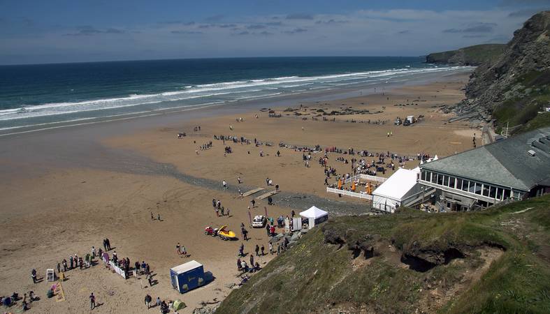 A higher viewpoint on the coast path above the beach gives a different perspective to the game.