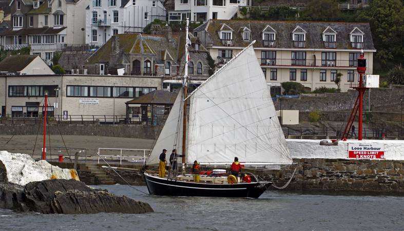 La Cancalaise CAN87 enters Looe River after her channel crossing from her home port in Britanny.