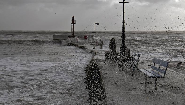 Even though high tide levels are now falling the strong waves and swell battered Looe again.