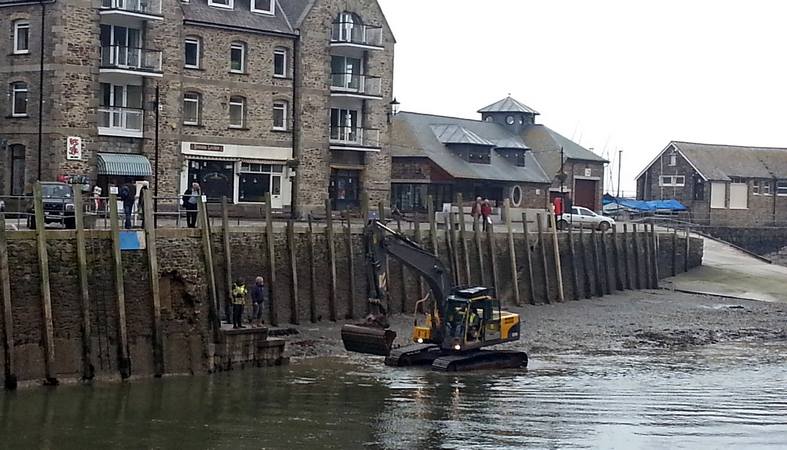 Clearing underneath the arches of Looe bridge.