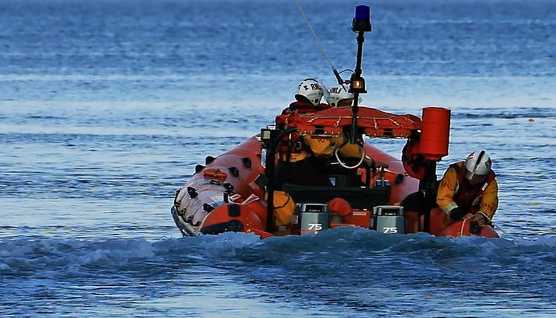 Whilst out on exercise in Looe bay, the Atlantic 75 is tasked by HM Coastguard to assist paramedics on a beach at Whitsands.