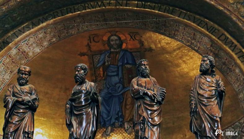 replicas stand on the facade of the Basilica San Marco with the originals on show in the Basilica's museum.