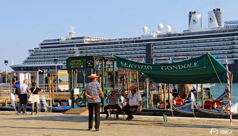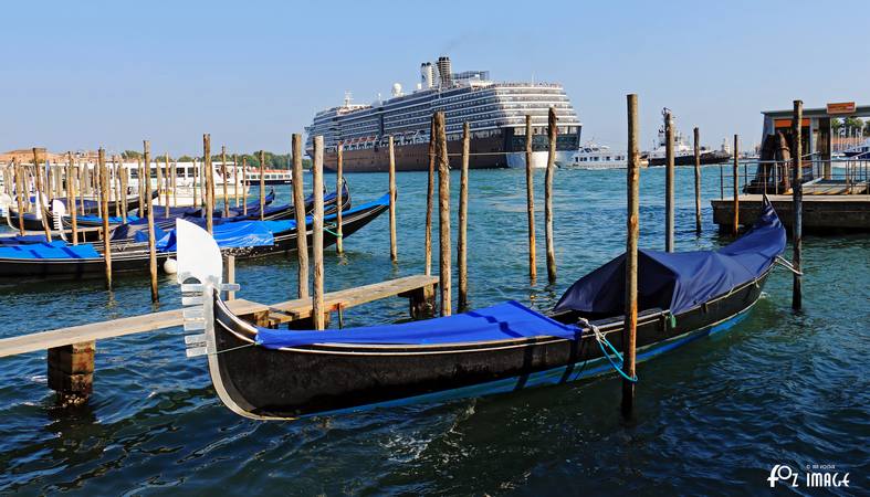 Returning to The Riva degli Schiavoni the wide quayside on the Bacino San Marco we see our first cruise ship.