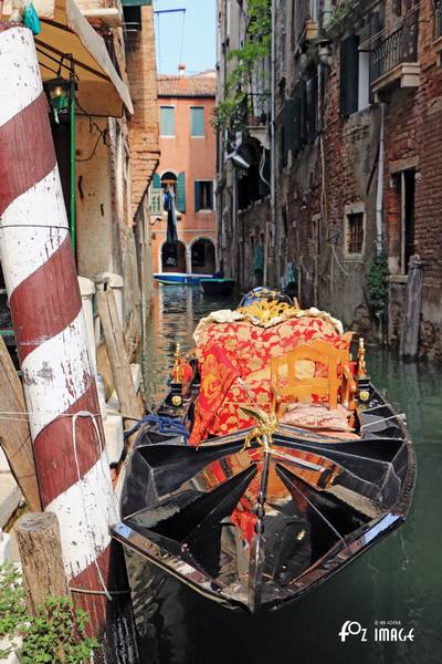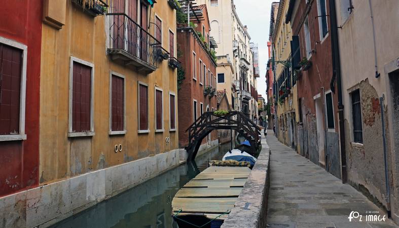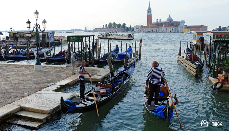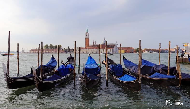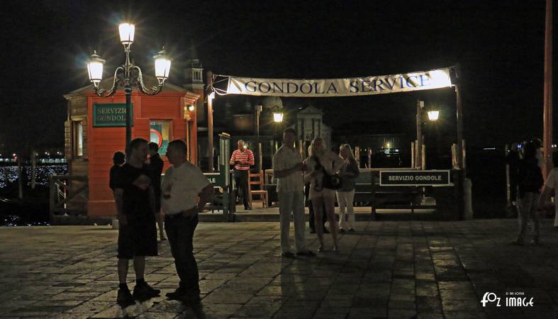 Gondolas are still tied up along the quayside.
