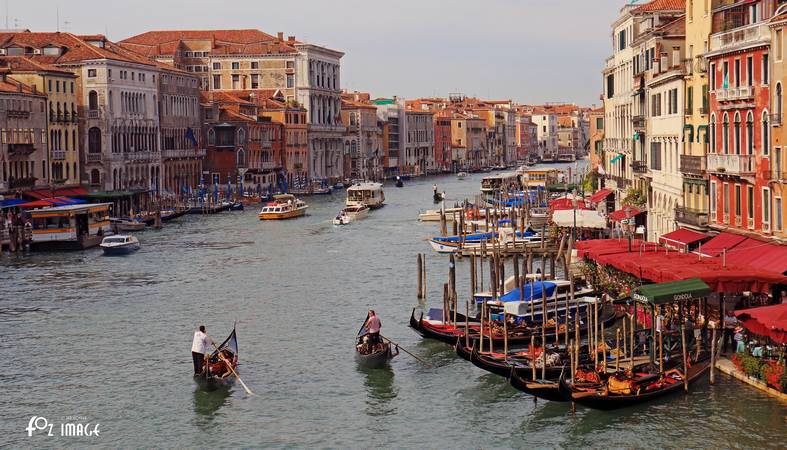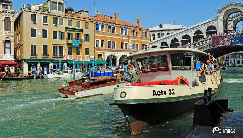 We get off the water bus and cross the Rialto bridge.