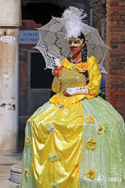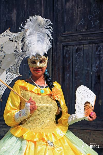 At the far end of the square a lady in Carnivale dress poses for photographers for a Euro tip.