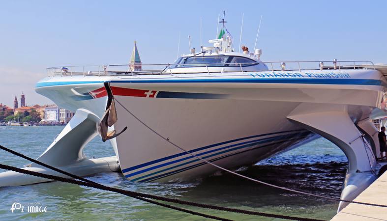 Moored alongside the Riva degli Schiavoni for the Regatta the crew were giving organised tours of this high tech vessel.