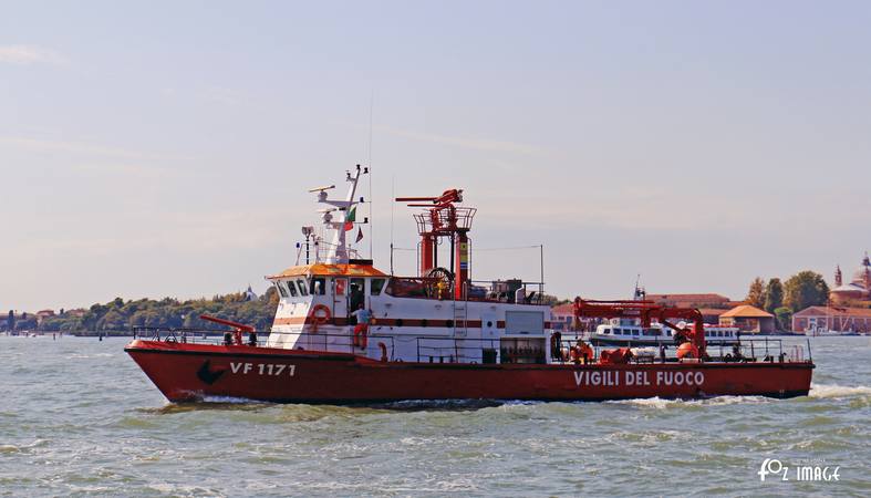 A Vigili del Fuoco Fire boat passes.