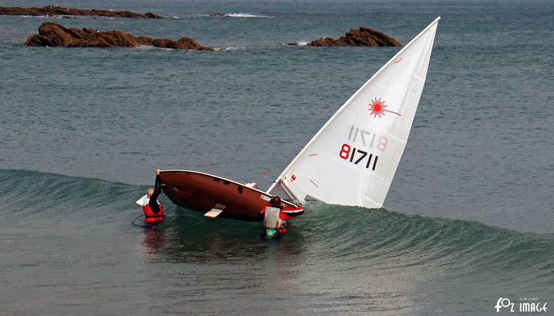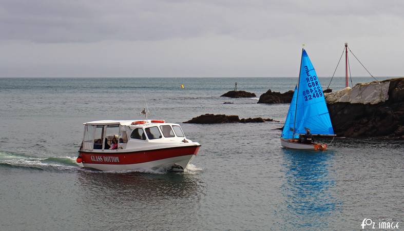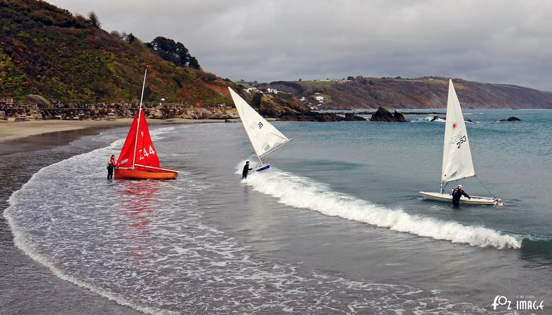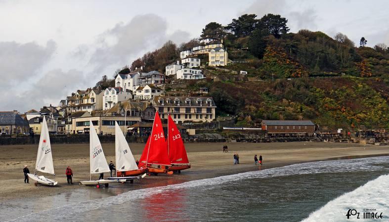 Tricky conditions in a crosswind as the dinghies head out into Looe bay.