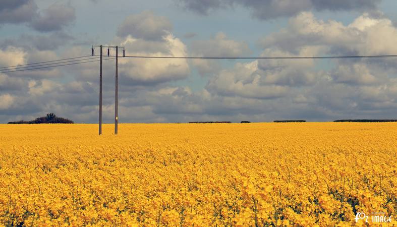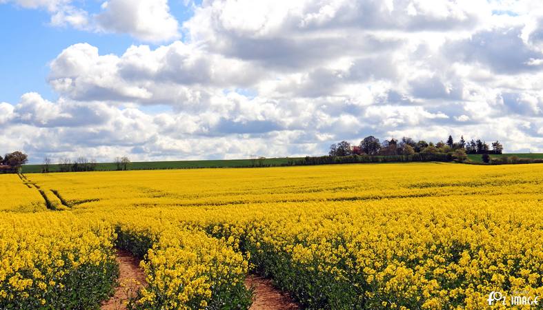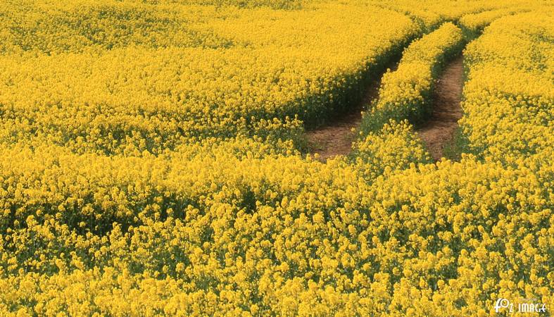 The fields are a golden yellow as the crop blossoms.