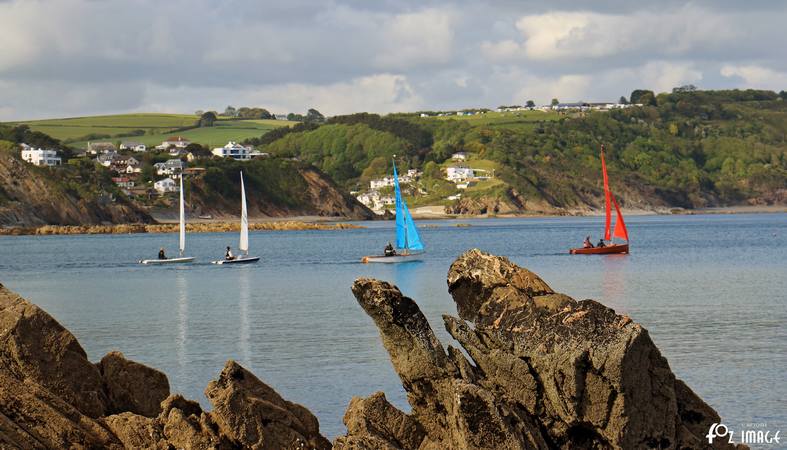 The dinghies head out into Looe bay.