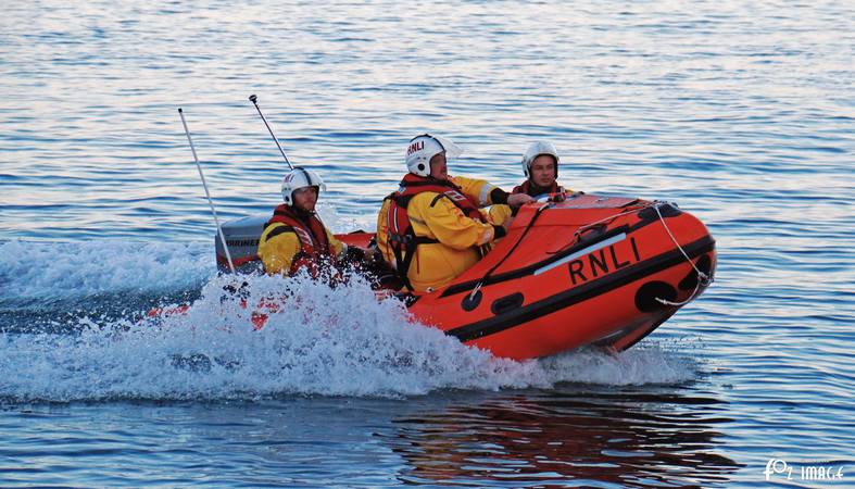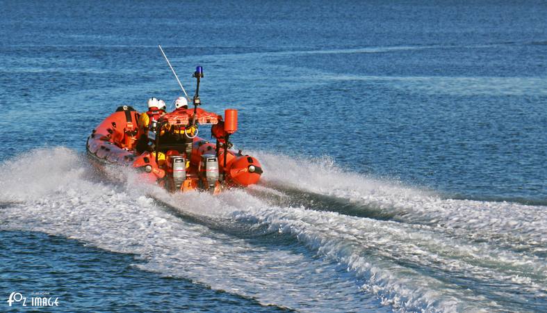 Looe RNLI's Atlantic 75 B-793 Alan and Margaret heads out into Looe bay.