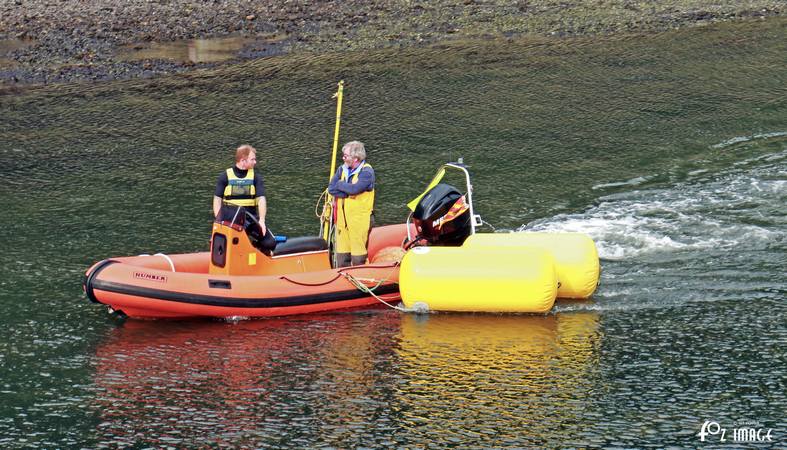 One of the safety boats heads out.