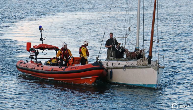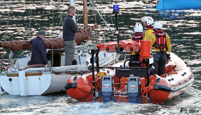 This evening the volunteer crewmen from Looe RNLI were aware of a local sailing boat moored in Looe bay.
